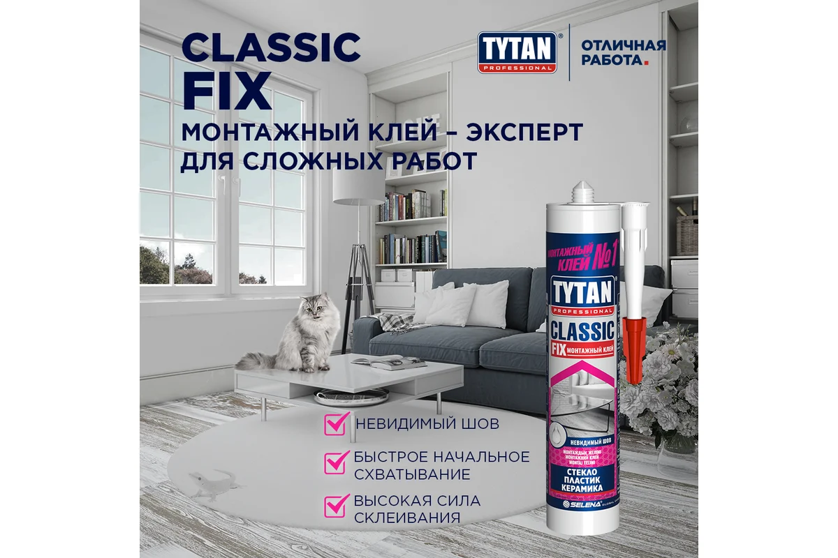 Каучуковый клей Tytan Professional Classic Fix для различных монтажных и отделочных работ в строительстве.