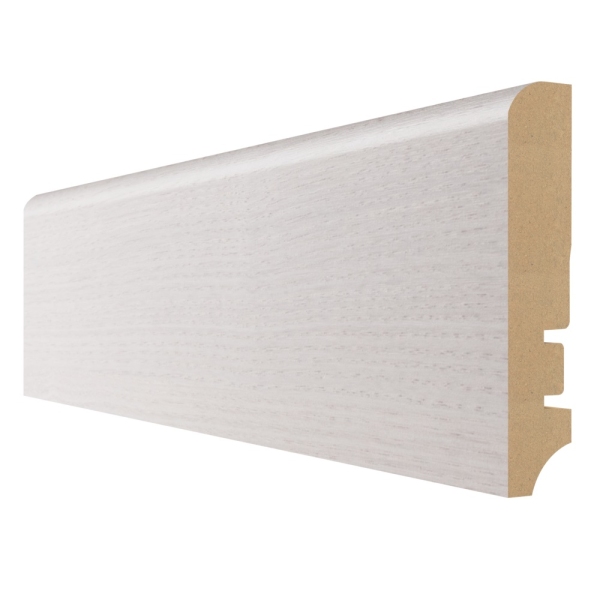 Основа плинтуса MDF (плита средней плотности) производится из древесных волокон с добавлением клея или же лигнина (природный продукт) и парафина или же воска (природный продукт). Новая технология улучшает свойства простого дерева, такие как влагостойкость, имеет однородную более прочную структуру, не коробится.
