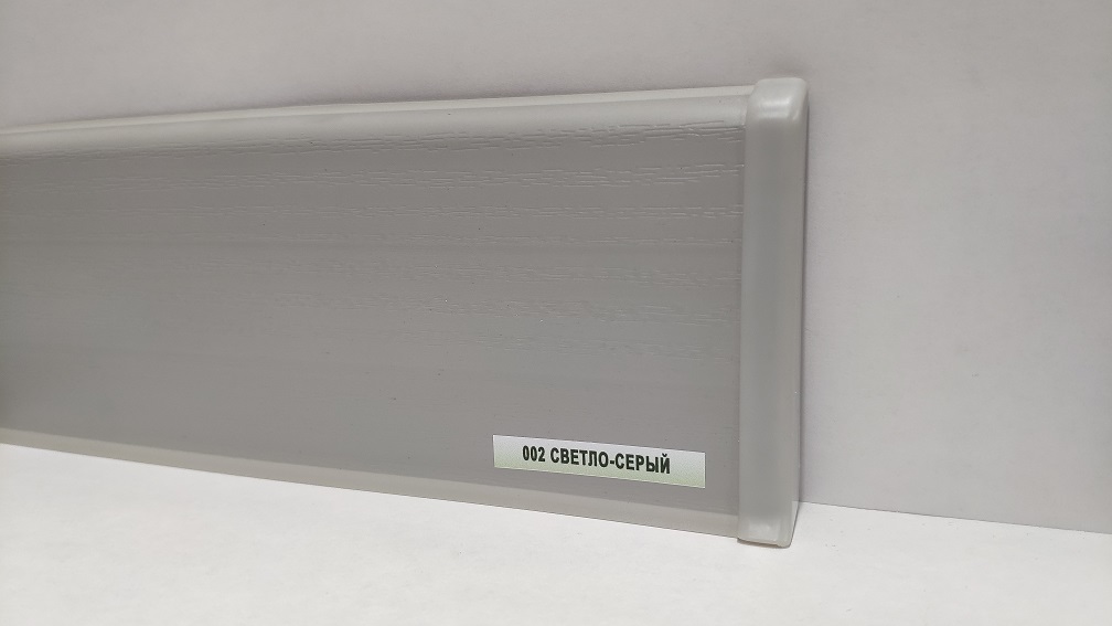 Плинтус напольный пластиковый Deconika 100 мм 002 Светло-серый - имеет продуманную конструкцию с кабель-каналами для прокладки кабелей. Профиль плинтуса прямой с мягкими кромками которые отлично прилегают даже в местах возникновения неровностей пола, а так же защищают от попадания пыли и влаги. Основание крепится к стене, потом вставляется лицевая панель в основание.