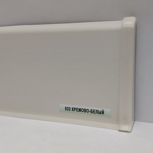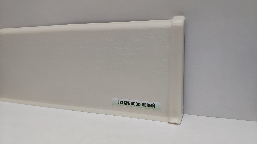 Плинтус напольный пластиковый Deconika 100 мм 033 Кремово-белый - имеет продуманную конструкцию с кабель-каналами для прокладки кабелей. Профиль плинтуса прямой с мягкими кромками которые отлично прилегают даже в местах возникновения неровностей пола, а так же защищают от попадания пыли и влаги. Основание крепится к стене, потом вставляется лицевая панель в основание.
