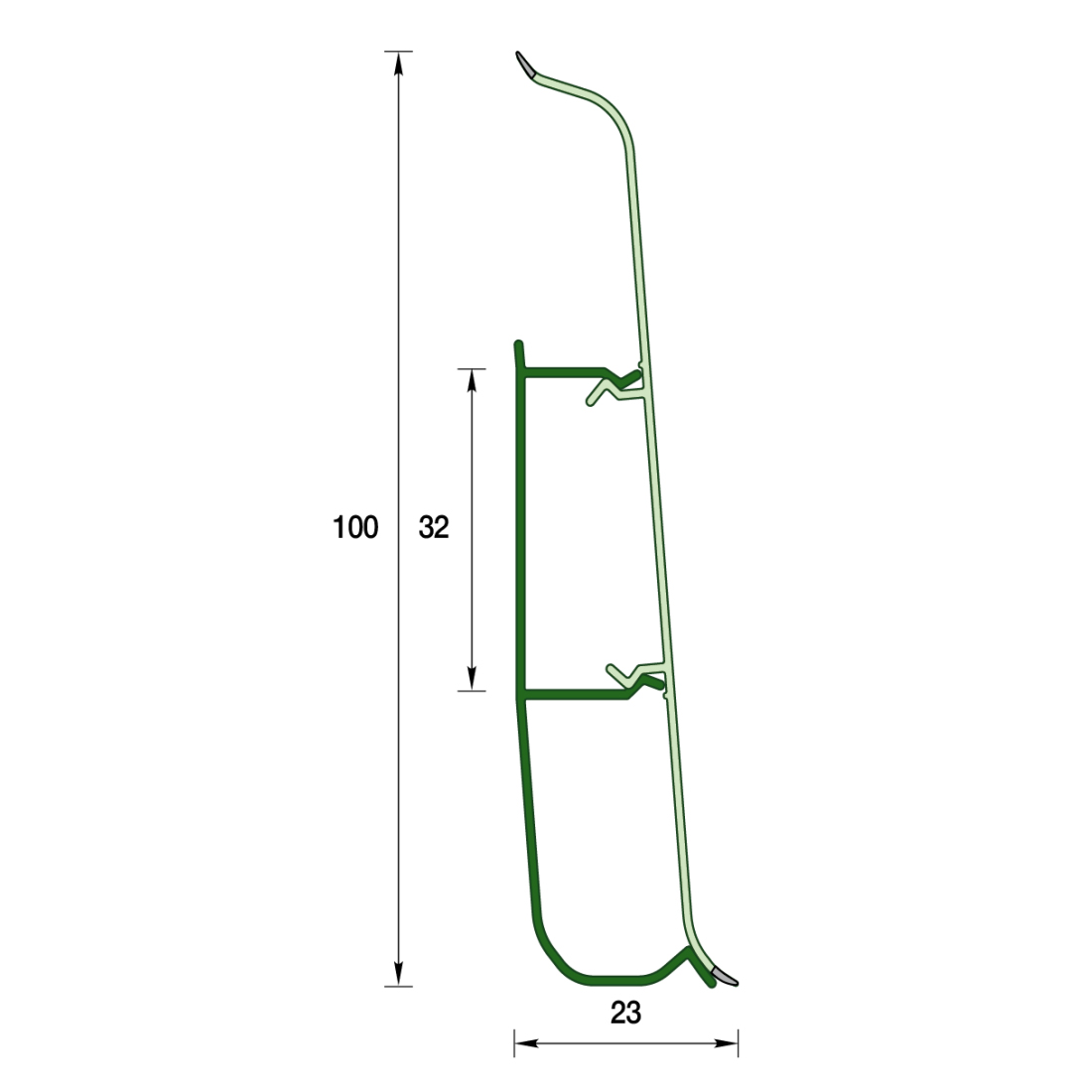 Легкий монтаж за счет формы и перфорации монтажного профиля плинтуса.
