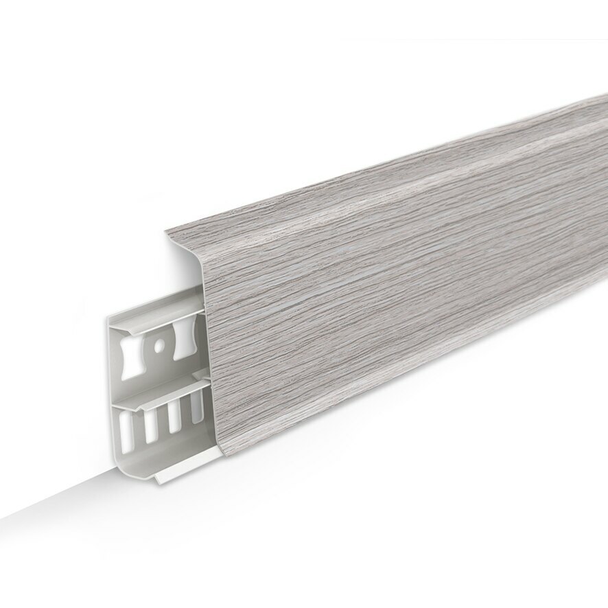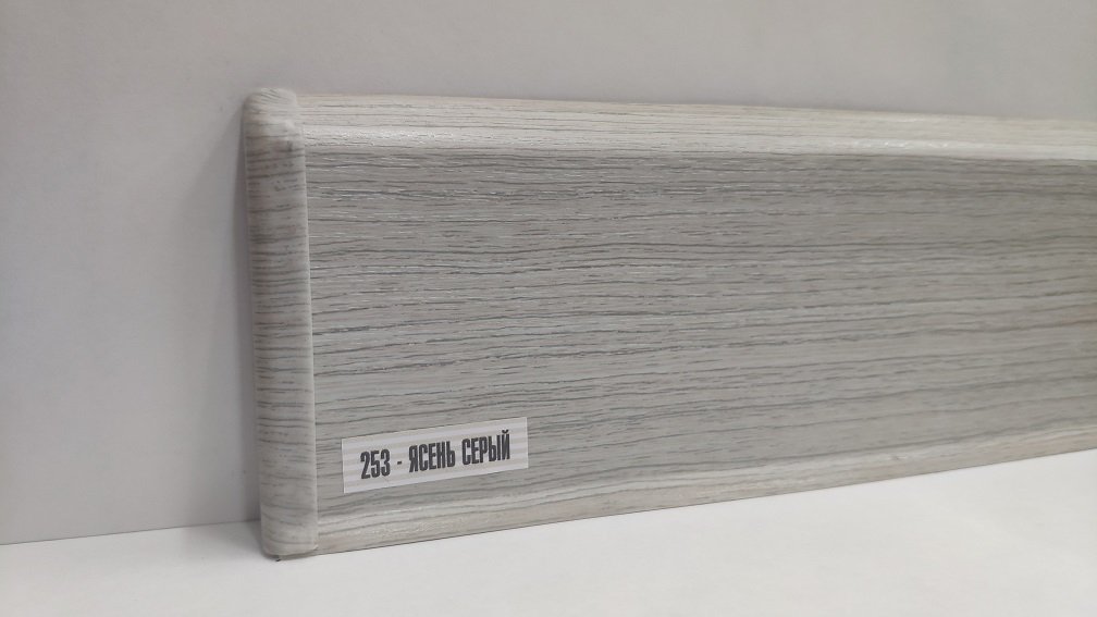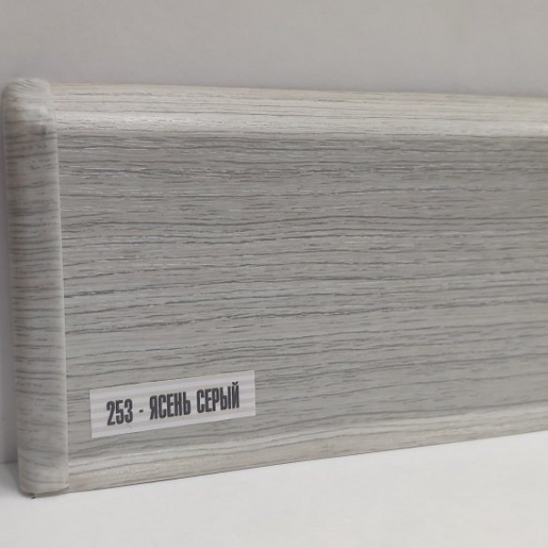 Плинтус напольный пластиковый Deconika 100 мм 253 Ясень серый - имеет продуманную конструкцию с кабель-каналами для прокладки кабелей. Профиль плинтуса прямой с мягкими кромками которые отлично прилегают даже в местах возникновения неровностей пола, а так же защищают от попадания пыли и влаги. Основание крепится к стене, потом вставляется лицевая панель в основание.