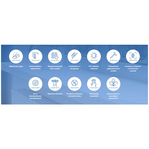 Надёжность. Подоконник имеет самое массивное и устойчивое основание среди аналогов, что позволяет ему выдерживать любые виды нагрузок.