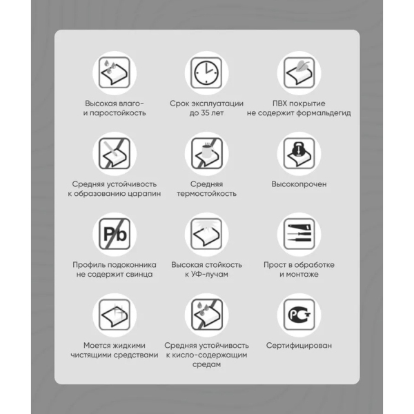 Подоконник не поведет на солнце, он не изменит свою геометрическую форму при высоких температурах и в регионах с высокой солнечной активностью.