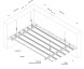 Реечный потолок немецкого H-дизайна состоит из алюминиевых декоративных панелей 2 типоразмеров 85 и 135 мм, длина 3 и 4 м, несущих направляющих из оцинкованной стали, располагающихся перпендикулярно панелям, и опциональных раскладок между панелями (15 мм).