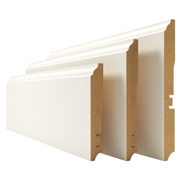 Основа плинтуса MDF (плита средней плотности) производится из древесных волокон с добавлением клея или же лигнина (природный продукт) и парафина или же воска (природный продукт). Новая технология улучшает свойства простого дерева, такие как влагостойкость, имеет однородную более прочную структуру, не коробится.