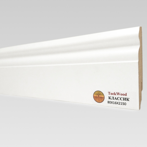 Плинтус МДФ Teckwood Классик Белый Ф-3 80 мм - благодаря гармоничному сочетанию с дизайном интерьера придает помещению особый шик и аристократизм. Высокое качество основного материала и финишного покрытия. При желании можно использовать под покраску.