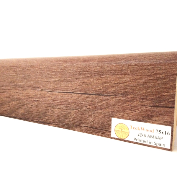 Плинтус МДФ Teckwood Цветной 75 мм Дуб Амбар - имеет финишное декоративное покрытие с цифровой печатью и высокое качество основного материала.