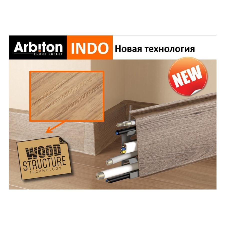 Плинтус напольный пластиковый Arbiton Indo 131 Дуб Филадельфия - с кабель каналом и мягкими кромками которые отлично прилегают в местах возникновения неровностей пола и защищают от попадания пыли и влаги.