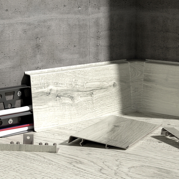 У плинтуса мягкий край, встроенный кабель-канал и съёмная верхняя панель. Мягкий край обеспечивает плотное прилегание плинтуса к поверхностям, с помощью кабель-канала возможно незаметно проложить кабели, а съёмная верхняя панель плинтуса обеспечивает удобство монтажа.