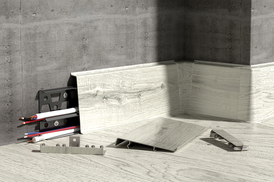 У плинтуса мягкий край, встроенный кабель-канал и съёмная верхняя панель. Мягкий край обеспечивает плотное прилегание плинтуса к поверхностям, с помощью кабель-канала возможно незаметно проложить кабели, а съёмная верхняя панель плинтуса обеспечивает удобство монтажа.