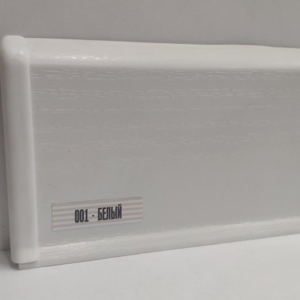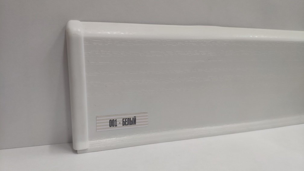 Плинтус напольный пластиковый Deconika 100 мм 001 Белый - имеет продуманную конструкцию с кабель-каналами для прокладки кабелей. Профиль плинтуса прямой с мягкими кромками которые отлично прилегают даже в местах возникновения неровностей пола, а так же защищают  от попадания пыли и влаги. Основание крепится к стене, потом вставляется лицевая панель в основание.
