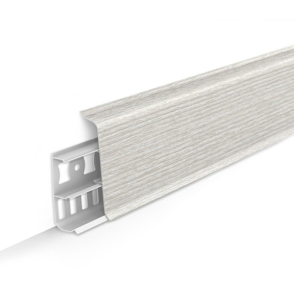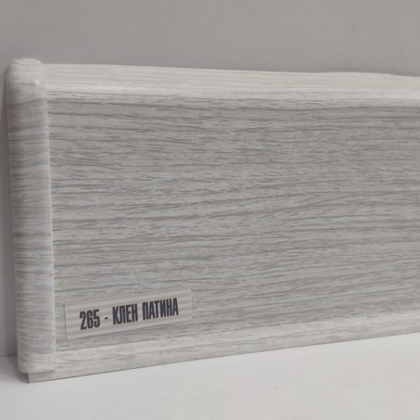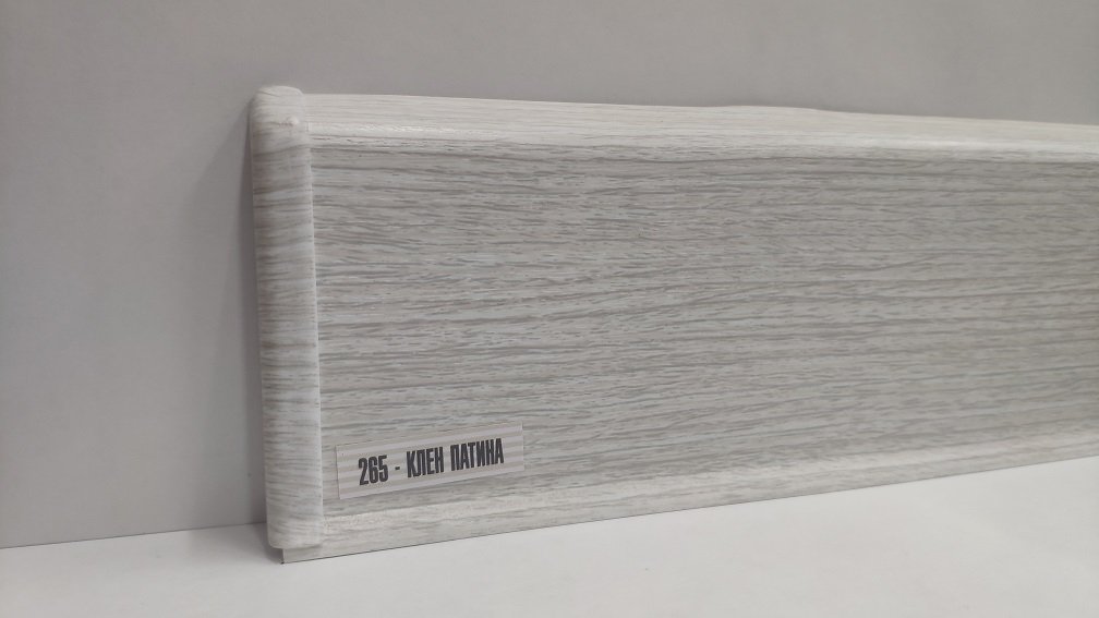 Плинтус напольный пластиковый Deconika 100 мм 265 Клён Патина - имеет продуманную конструкцию с кабель-каналами для прокладки кабелей. Профиль плинтуса прямой с мягкими кромками которые отлично прилегают даже в местах возникновения неровностей пола, а так же защищают от попадания пыли и влаги. Основание крепится к стене, потом вставляется лицевая панель в основание.