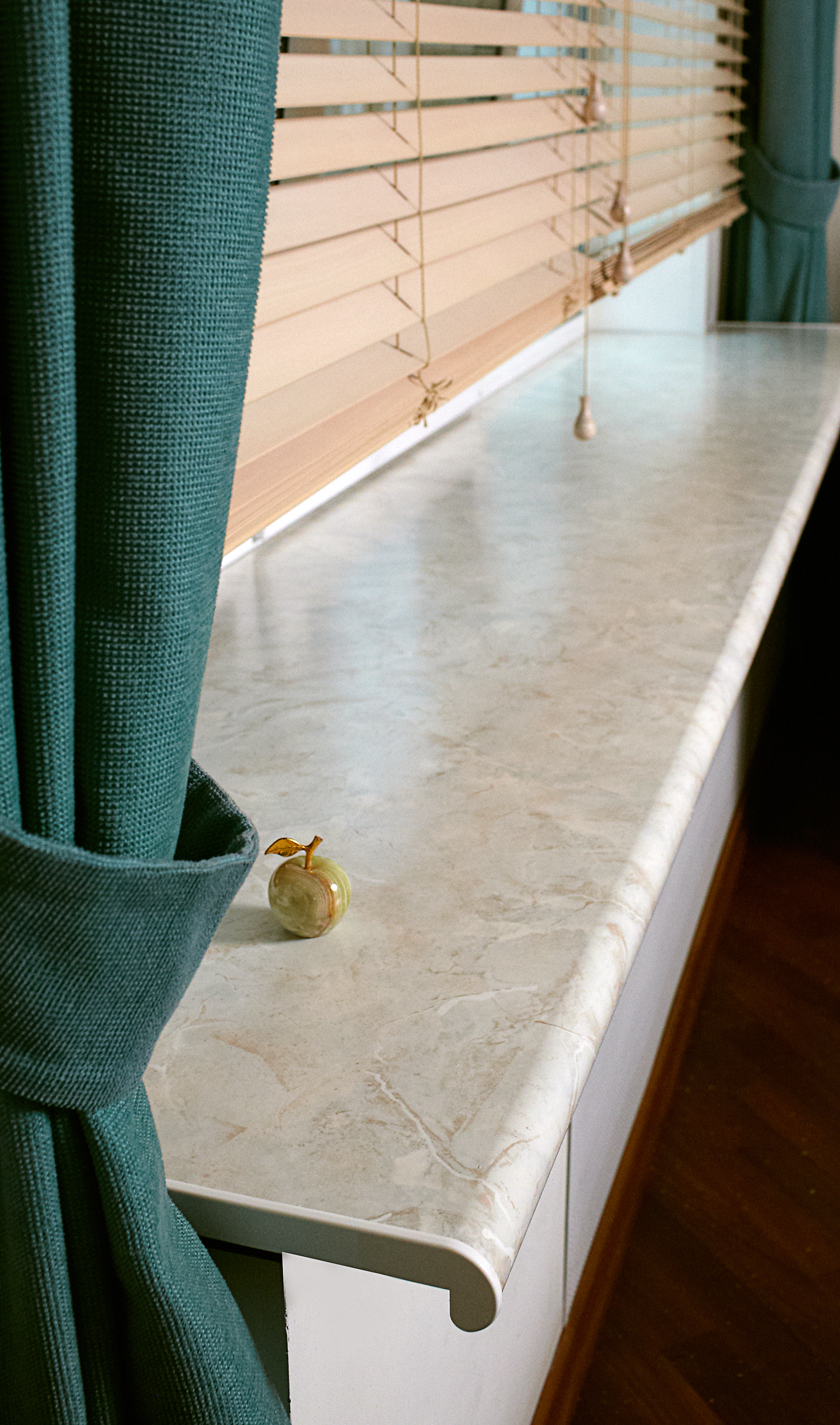 Новый круглый носик, за счет которого создается полное ощущение, что перед Вами подоконник из натурального камня. Подоконники Estera обладают идеально ровной поверхностью и благородным покрытием.