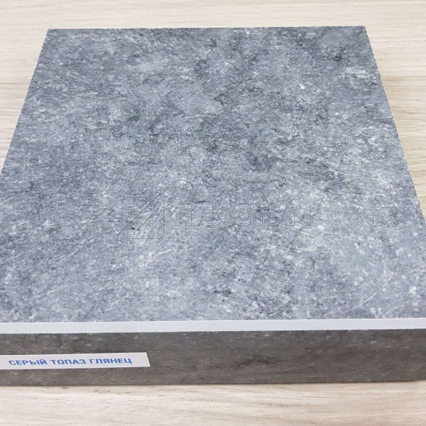 Подоконник пластиковый Moeller (Мюллер) LD 40 Серый топаз глянец - это продукт премиум класса, имеет гладкую глянцевую поверхность, имитирующую текстуру натурального камня. Акриловое покрытие, обеспечивает идеальный блеск и гладкость, а так же стойкость к ультрафиолету, царапинам и истиранию.
