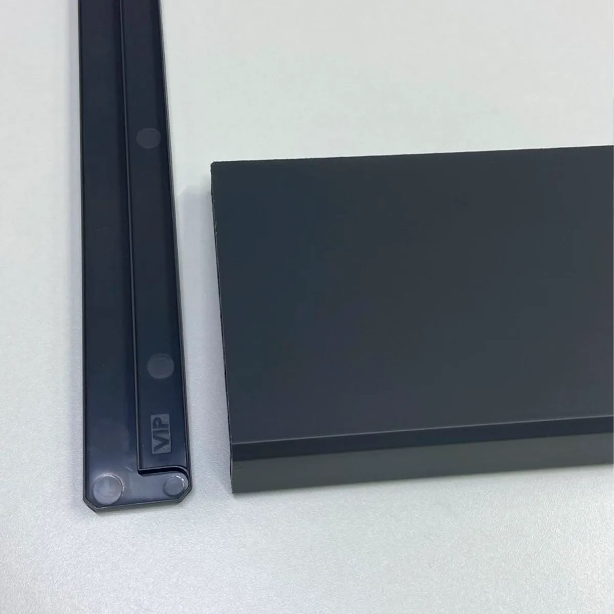 Подоконник ПВХ Витраж Дизайн (Vitrage Design) Антрацит отличается идеально ровной поверхностью, особой прочность, имеют защиту от локальных механических повреждений, УФ-лучей, воздействия невысоких температур, кислотосодержащих и едких веществ, остатков пищевых продуктов, спиртов. Ламинируются многослойной антивандальной пленкой, которая не содержит формальдегиды.