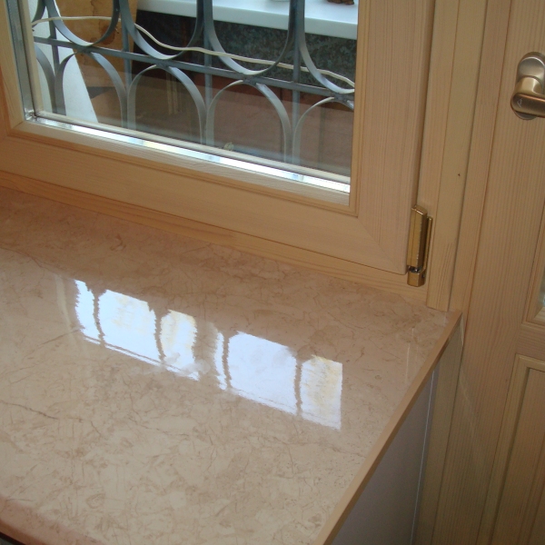 Подоконники Danke Premium Creme de Turquie (Крем де Турке) - имеет гладкую глянцевую поверхность, теплые кремовые оттенки и тонкий рисунок турецкого мрамора. Поверхность не имеет пор, поэтому на ней не задерживается грязь и пыль. Для мытья достаточно воспользоваться влажной губкой или салфеткой.
