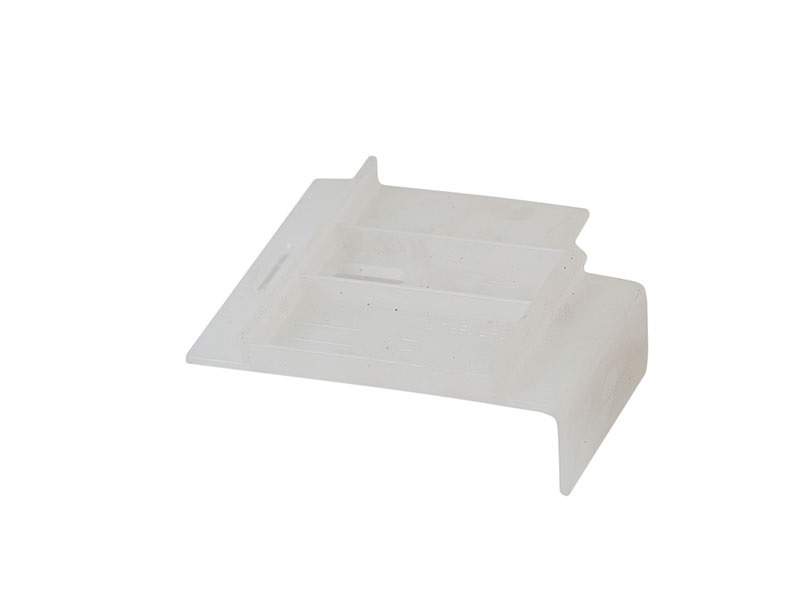 Защёлка применяется для фиксации откосной системы к оконному и дверному проему, фиксации наличника к стене по периметру проема, а также фиксации декоративного элемента «крышка угловая». Она позволяет производить монтаж откосной системы без клея и герметиков, что обеспечивает службу откосов на не один десяток лет. Использование данного крепежного элемента ведет к упрощению и сокращению сроков монтажа. Размеры защелки позволяют устанавливать систему на проемы с монтажным швом до 5 см. Изготавливаются литьевым методом из ударопрочного полистирола.